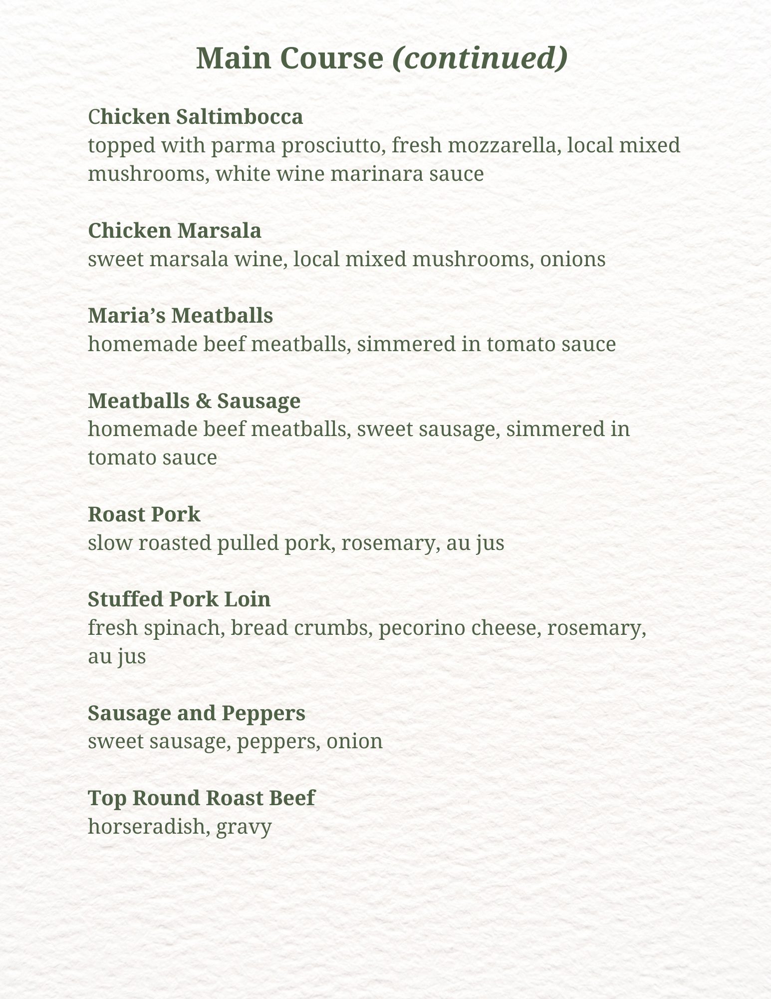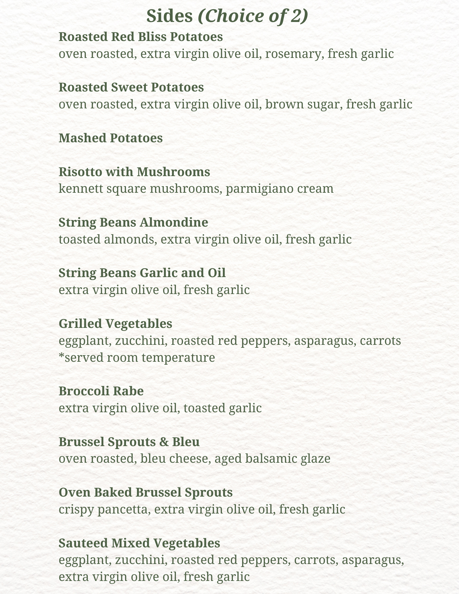 Limoncello Menu Selections